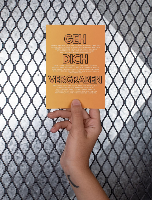 Vergraben mögen wir dich hier nicht, denn wir wissen, dass du wie ein Diamant im Schmutz glänzen wirst, egal wo das Leben dich hinführt. Deine Qualitäten und Talente werden immer strahlen, und wir werden dich als leuchtendes Beispiel in Erinnerung behalten.